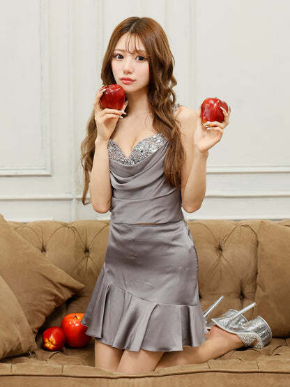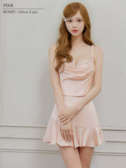 フラワーレース/ドレープ/サテン/フリル/ビジュー/セパレート/フレアミニドレス