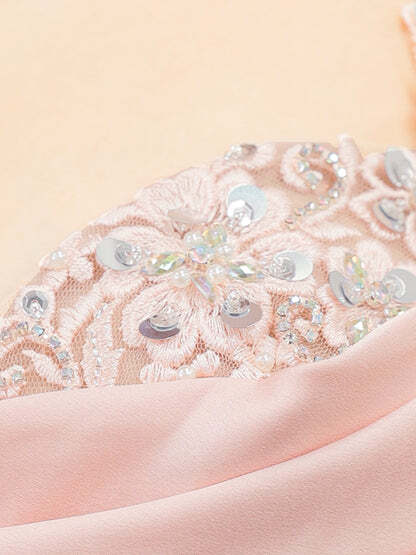 胸元のレースがエレガントに輝き、女性らしさを引き立てます。