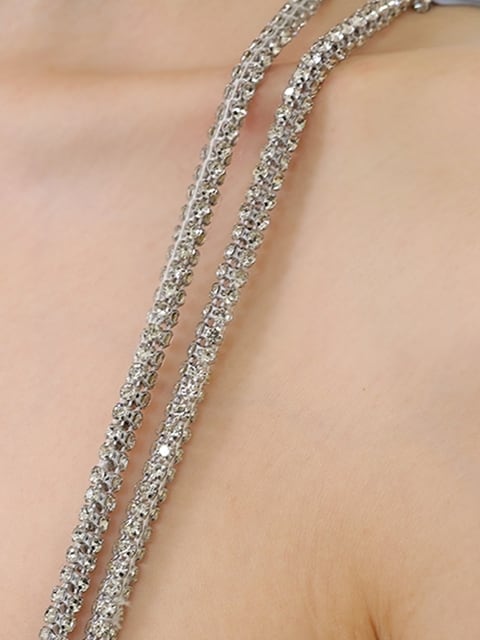 バストサテンと煌めくストラップが華やかなタイトドレス。