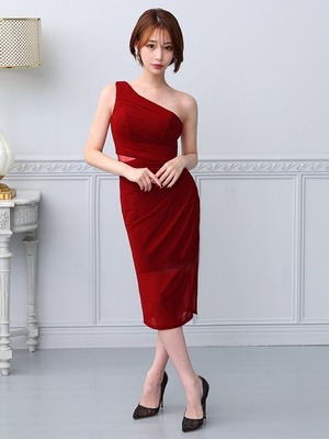 柔らかな生地で仕立てられたワンショルダーのタイトドレス。