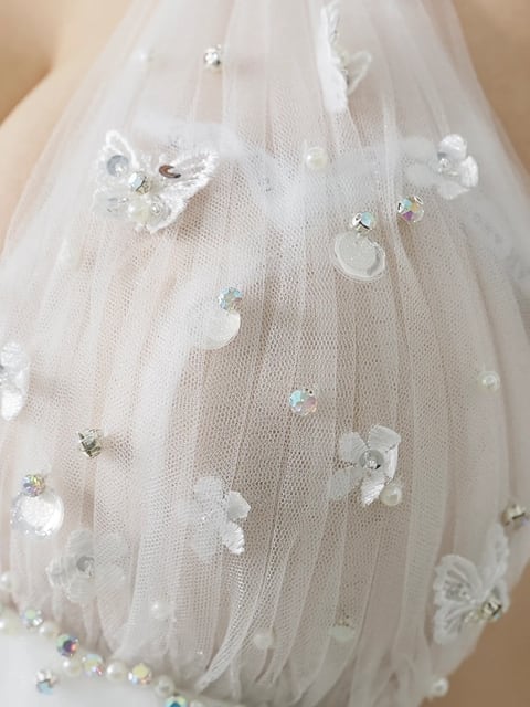 透け感チュールに煌めく装飾で視線を独り占め。