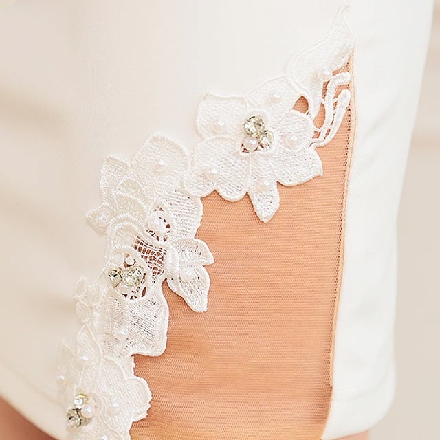 素材 ストレッチ素材、刺繡レース、メッシュ、ビーズ